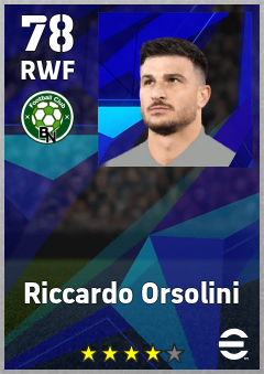 . Riccardo Orsolini is a Right Wing Forward footballer from Italy who plays for Bologna Rb in eFootball 2026.