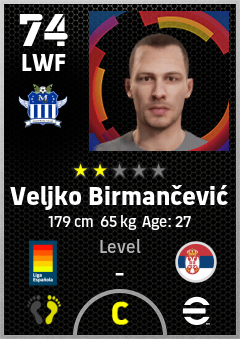 . Veljko Birmančević is a Left Wing Forward footballer from Serbia who plays for Getafe A in eFootball 2026.