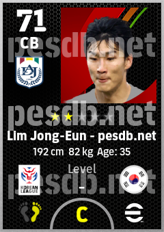 . Lim Jong-Eun is a Center Back footballer from Korea Republic who plays for Daejeon Rgw in eFootball 2026.