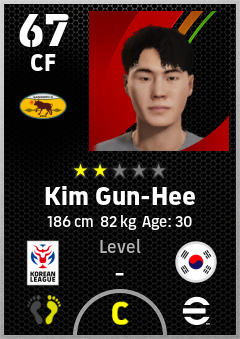 . Kim Gun-Hee is a Center Forward footballer from Korea Republic who plays for Gangwon O in eFootball 2026.