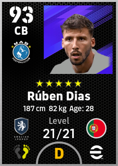 . Rúben Dias is a Center Back footballer from Portugal who plays for Manchester B in eFootball 2026.