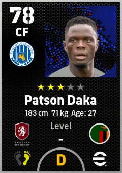 . Patson Daka is a Center Forward footballer from Zambia who plays for Leicester B in eFootball 2026.