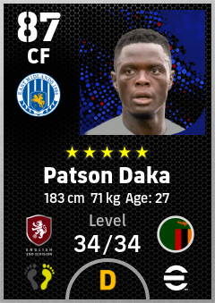 .Patson Daka is a Center Forward footballer from Zambia who plays for Leicester B in eFootball 2026.