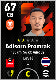 . Adisorn Promrak is a Center Back footballer from Thailand who plays for Ratchaburi Fc in eFootball 2026.