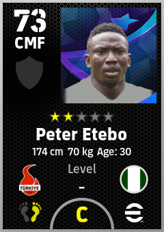 . Peter Etebo is a Center Midfielder footballer from Nigeria who plays for Gençlerbirliği Sk in eFootball 2026.