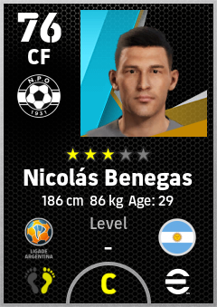 . Nicolás Benegas is a Center Forward footballer from Argentina who plays for Nueva Pompeya Nb in eFootball 2026.