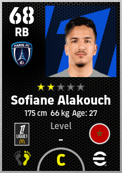 . Sofiane Alakouch is a Right Back footballer from Morocco who plays for Paris Fc in eFootball 2026.