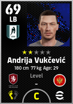 . Andrija Vukčević is a Left Back footballer from Montenegro who plays for Preston Wb in eFootball 2026.