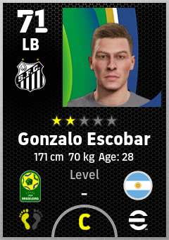 . Gonzalo Escobar is a Left Back footballer from Argentina who plays for Santos Fc in eFootball 2026.