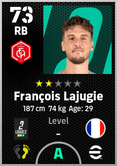 . François Lajugie is a Right Back footballer from France who plays for Fc Annecy in eFootball 2026.