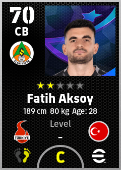 . Fatih Aksoy is a Center Back footballer from Türkiye who plays for Corendon Alanyaspor in eFootball 2026.