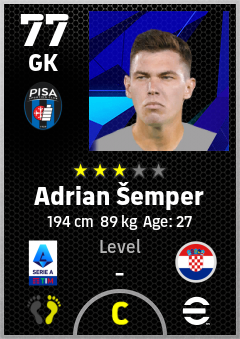 . Adrian Šemper is a Goalkeeper footballer from Croatia who plays for Pisa Sporting Club in eFootball 2026.