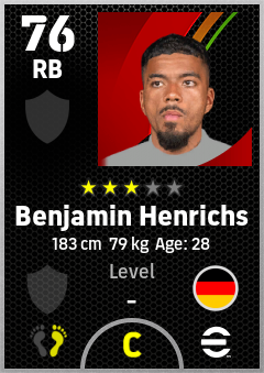 . Benjamin Henrichs is a Right Back footballer from Germany who plays for Free in eFootball 2026.