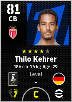 . Thilo Kehrer is a Center Back footballer from Germany who plays for As Monaco in eFootball 2026.