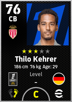 . Thilo Kehrer is a Center Back footballer from Germany who plays for As Monaco in eFootball 2026.