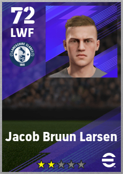 . Jacob Bruun Larsen is a Left Wing Forward footballer from Denmark who plays for Burnley Rb in eFootball 2026.