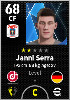 . Janni Serra is a Center Forward footballer from Germany who plays for Aarhus Hb in eFootball 2026.