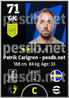 . Patrik Carlgren is a Goalkeeper footballer from Sweden who plays for Fc Nantes in eFootball 2026.