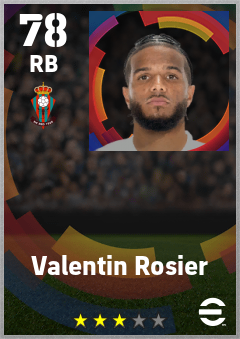 . Valentin Rosier is a Right Back footballer from France who plays for Pamplona Ra in eFootball 2026.