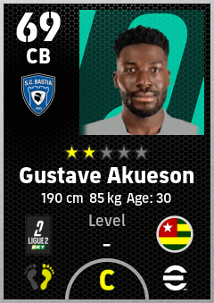 . Gustave Akueson is a Center Back footballer from Togo who plays for Sc Bastia in eFootball 2026.