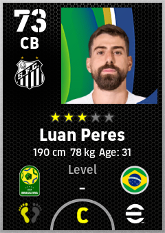 . Luan Peres is a Center Back footballer from Brazil who plays for Santos Fc in eFootball 2026.