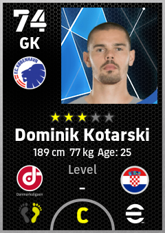 . Dominik Kotarski is a Goalkeeper footballer from Croatia who plays for København Hb in eFootball 2026.