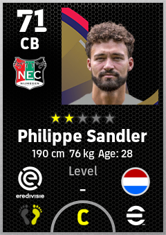 . Philippe Sandler is a Center Back footballer from Netherlands who plays for N.e.c. Nijmegen in eFootball 2026.