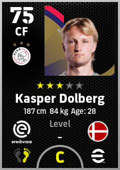 . Kasper Dolberg is a Center Forward footballer from Denmark who plays for Ajax in eFootball 2026.
