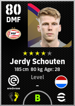 . Jerdy Schouten is a Defensive Midfielder footballer from Netherlands who plays for Psv in eFootball 2026.