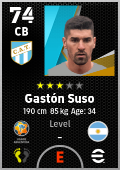 . Gastón Suso is a Center Back footballer from Argentina who plays for Tucumán Ab in eFootball 2026.