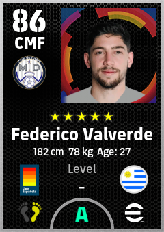 . Federico Valverde is a Center Midfielder footballer from Uruguay who plays for Madrid Chamartin B in eFootball 2026.