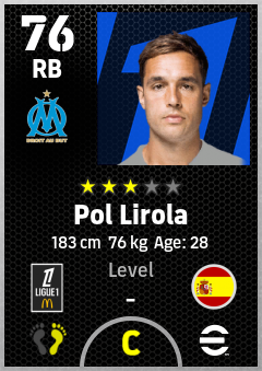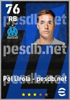 . Pol Lirola is a Right Back footballer from Spain who plays for Olympique De Marseille in eFootball 2026.