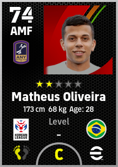 . Matheus Oliveira is a Attacking Midfielder footballer from Brazil who plays for Anyang P in eFootball 2026.