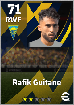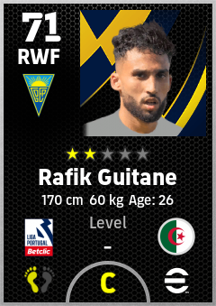. Rafik Guitane is a Right Wing Forward footballer from Algeria who plays for Gd Estoril Praia in eFootball 2026.