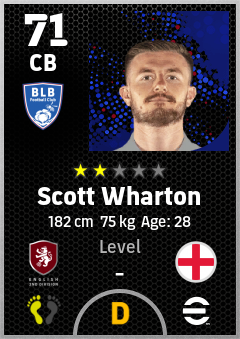 . Scott Wharton is a Center Back footballer from England who plays for Blackburn Bw in eFootball 2026.
