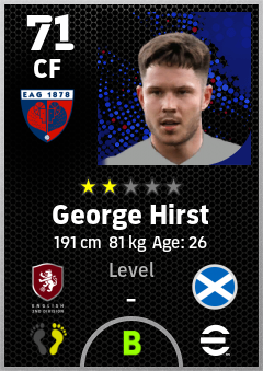 . George Hirst is a Center Forward footballer from Scotland who plays for Ipswich Bw in eFootball 2026.