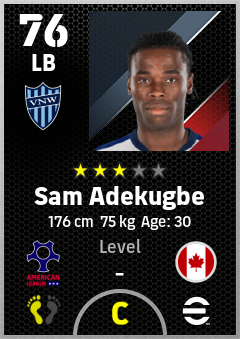. Sam Adekugbe is a Left Back footballer from Canada who plays for Vancouver Bw in eFootball 2026.