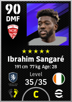 .Ibrahim Sangaré is a Defensive Midfielder footballer from Côte D'ivoire who plays for Nottingham Rw in eFootball 2026.