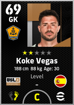 . Koke Vegas is a Goalkeeper footballer from Spain who plays for Rhode Island Fc in eFootball 2026.