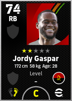 . Jordy Gaspar is a Right Back footballer from Angola who plays for Free in eFootball 2026.