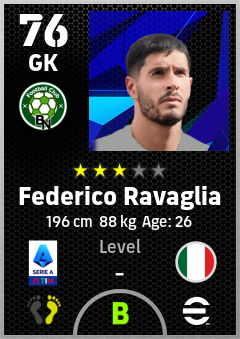 . Federico Ravaglia is a Goalkeeper footballer from Italy who plays for Bologna Rb in eFootball 2026.