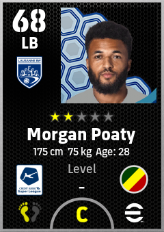 . Morgan Poaty is a Left Back footballer from Congo who plays for Lausanne Bw in eFootball 2026.