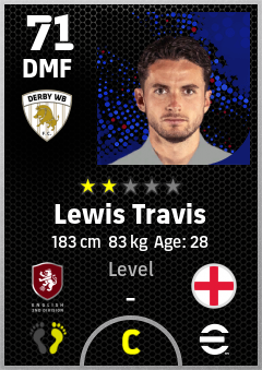 . Lewis Travis is a Defensive Midfielder footballer from England who plays for Derby Wb in eFootball 2026.