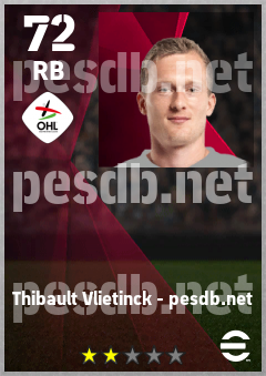 . Thibault Vlietinck is a Right Back footballer from Belgium who plays for Leuven Wzrg in eFootball 2026.