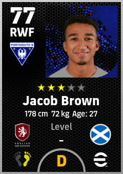 . Jacob Brown is a Right Wing Forward footballer from Scotland who plays for Portsmouth B in eFootball 2026.
