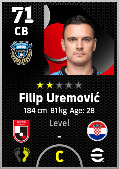 . Filip Uremović is a Center Back footballer from Croatia who plays for Kawasaki Frontale in eFootball 2026.