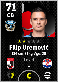 . Filip Uremović is a Center Back footballer from Croatia who plays for Kawasaki Frontale in eFootball 2026.