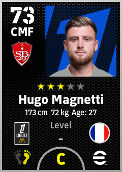 . Hugo Magnetti is a Center Midfielder footballer from France who plays for Stade Brestois 29 in eFootball 2026.