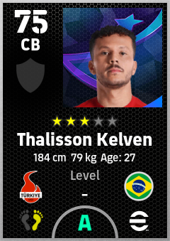 . Thalisson Kelven is a Center Back footballer from Brazil who plays for Gençlerbirliği Sk in eFootball 2026.