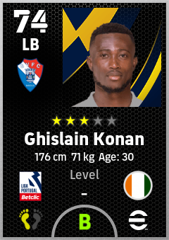 . Ghislain Konan is a Left Back footballer from Côte D'ivoire who plays for Gil Vicente Fc in eFootball 2026.